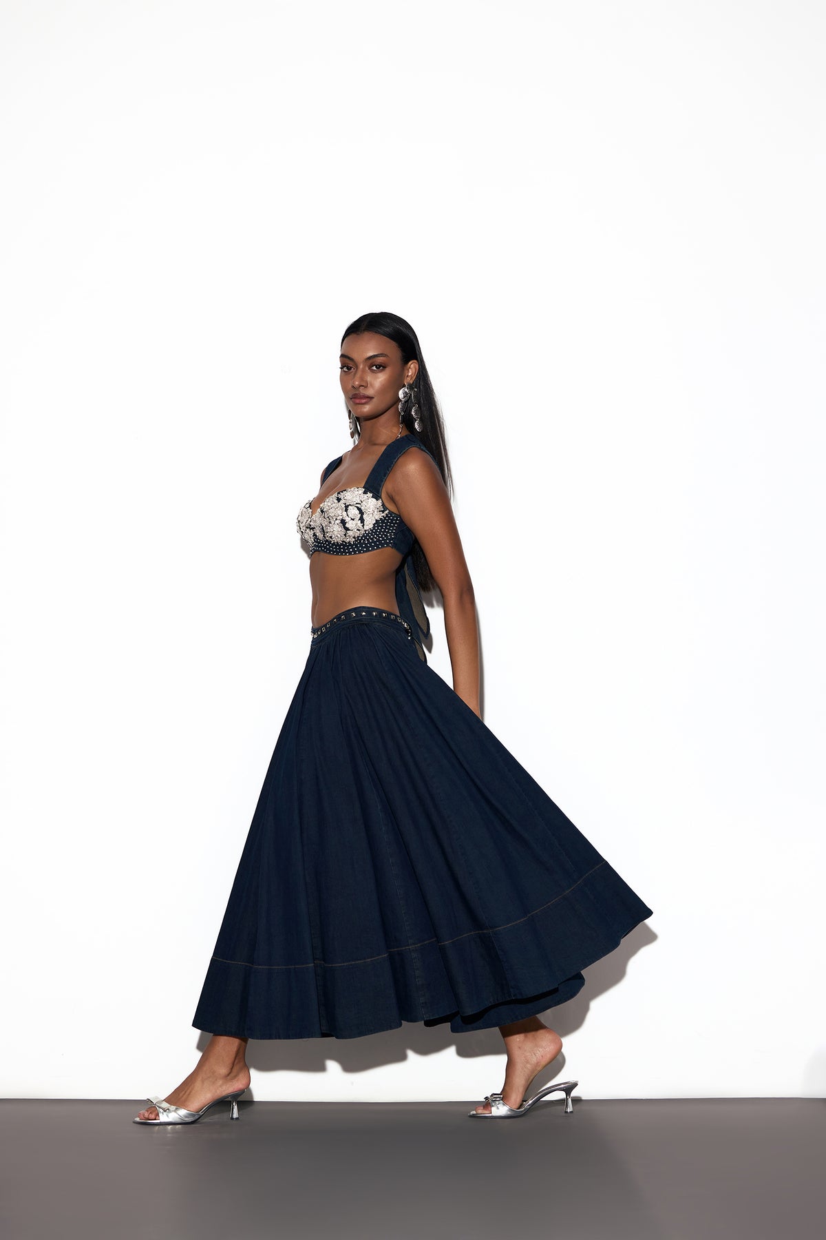Too much drama, that too in denim. Ani’s KOKA SKIRT is an old-fashioned beauty, in a new fashioned way. long pleated skirt, it’s vintage charm made modern.