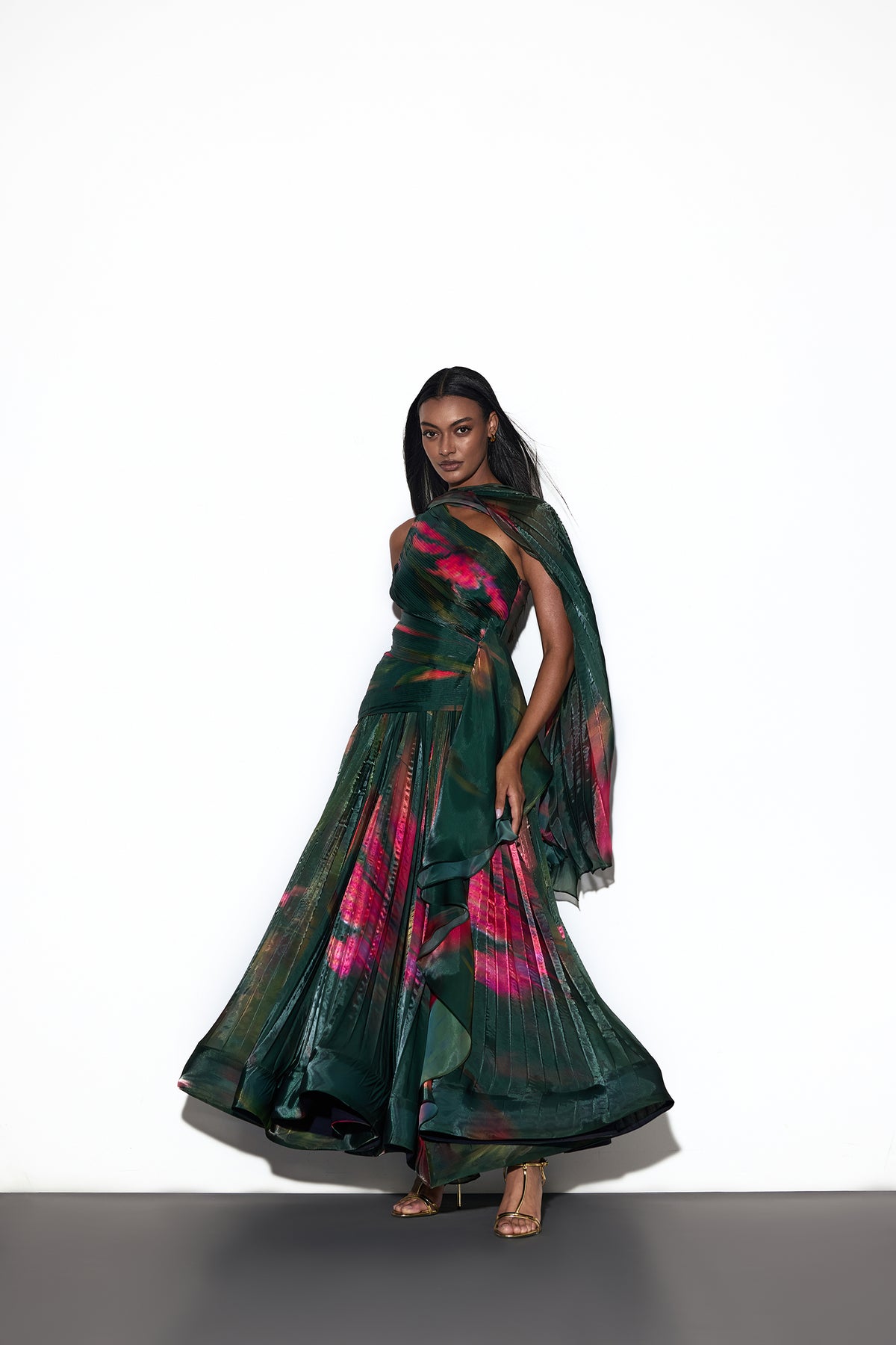 • Pleated bodice for sculpted structure