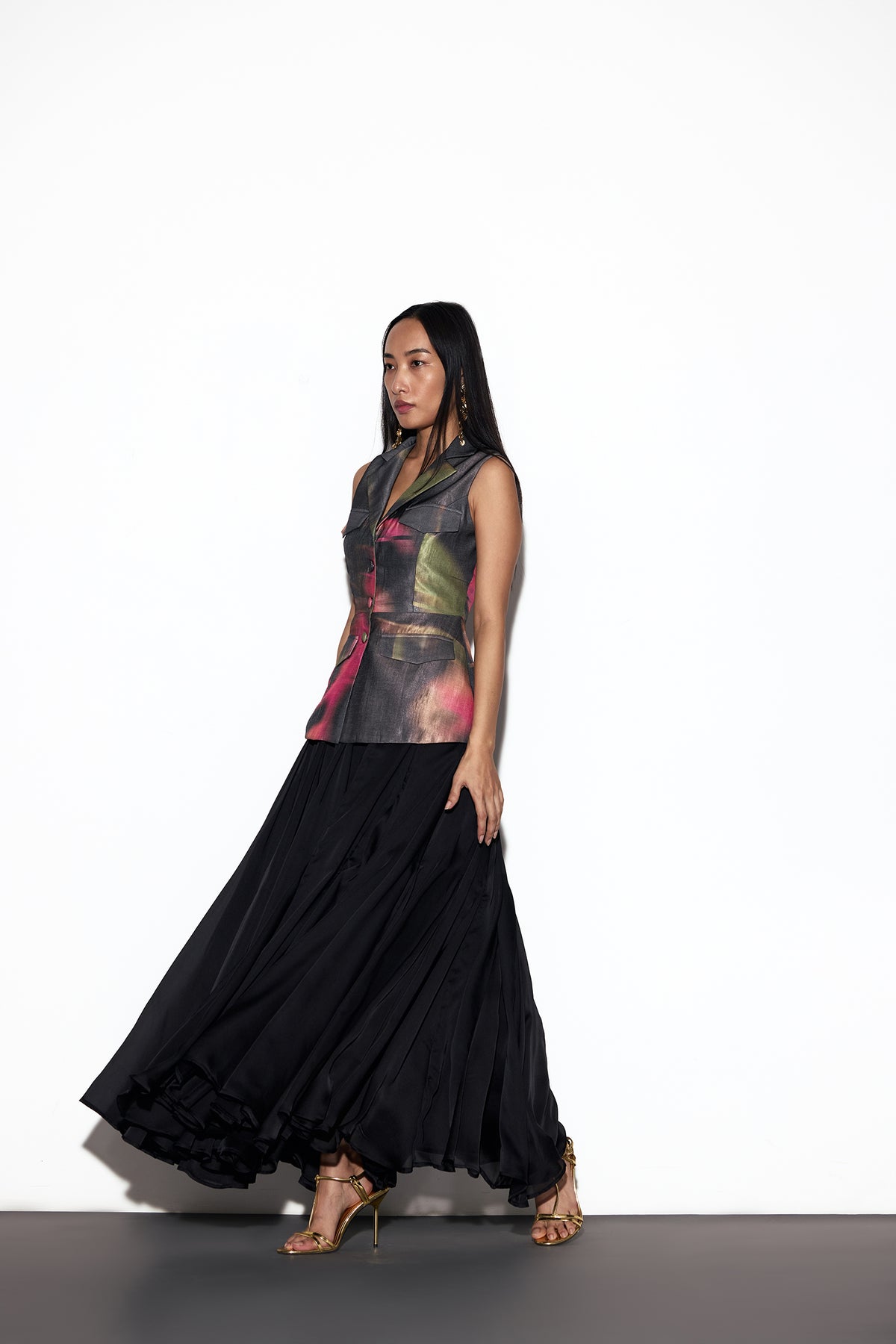 The MOCHI SET is a study in refined ease, where structure meets fluid grace. The sleeveless jacket, tailored with a notch collar and finished with fabric buttons, carries a quiet sophistication, its faux pocket flaps lending subtle charm. Layered over the Mochi Dress, a delicate piece held by noodle straps and framed by a square neckline, the look finds balance in contrast. With panel godets that ripple softly as you move and a sleek back zipper for closure, the dress adds fluidity to the jacket’s poise. Together, they create a harmony of timeless elegance, versatile, graceful, and endlessly refined.
